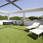 Strand faciliteterne på Hotel Elite omfatter liggestole og parasoller.